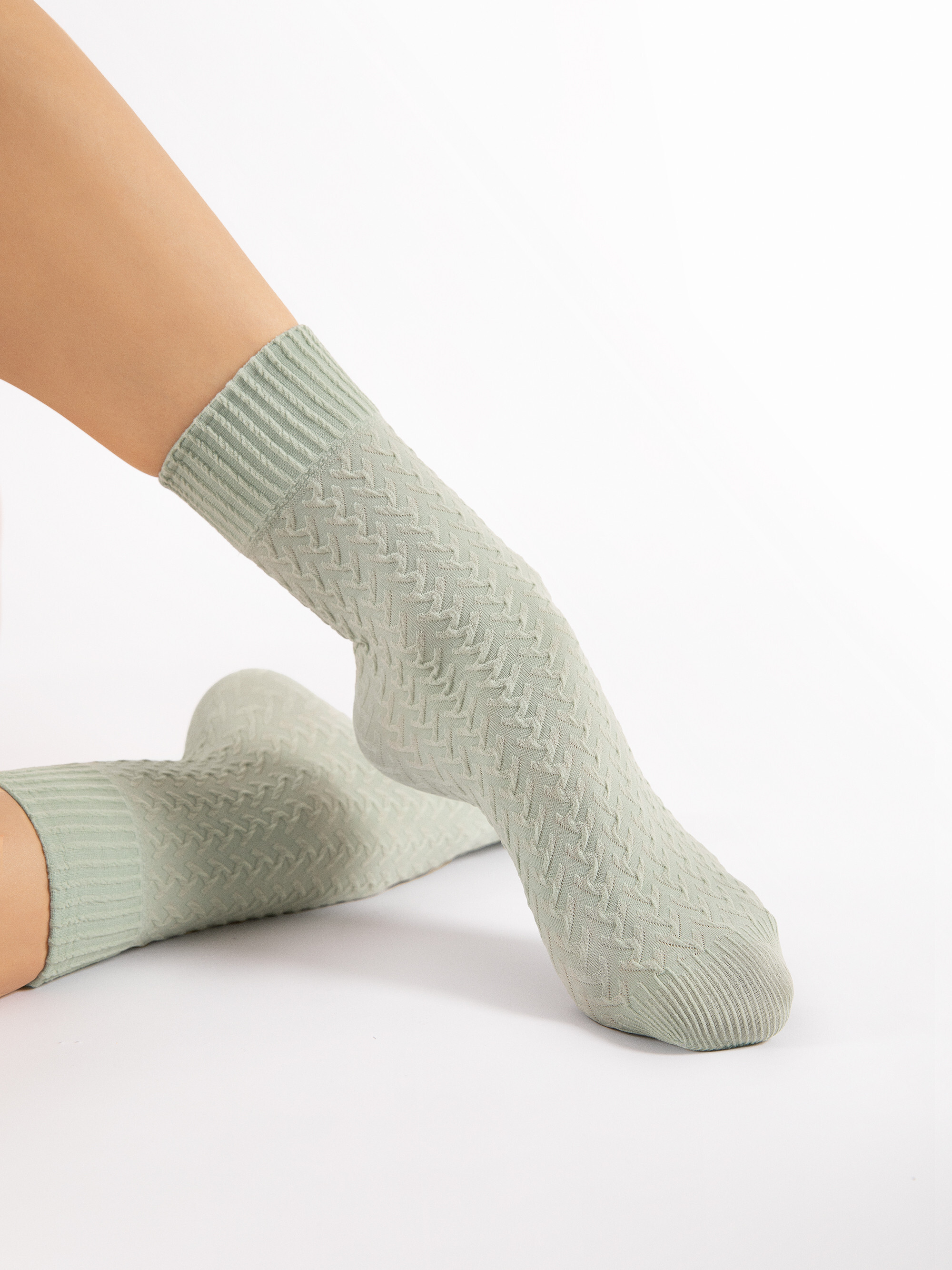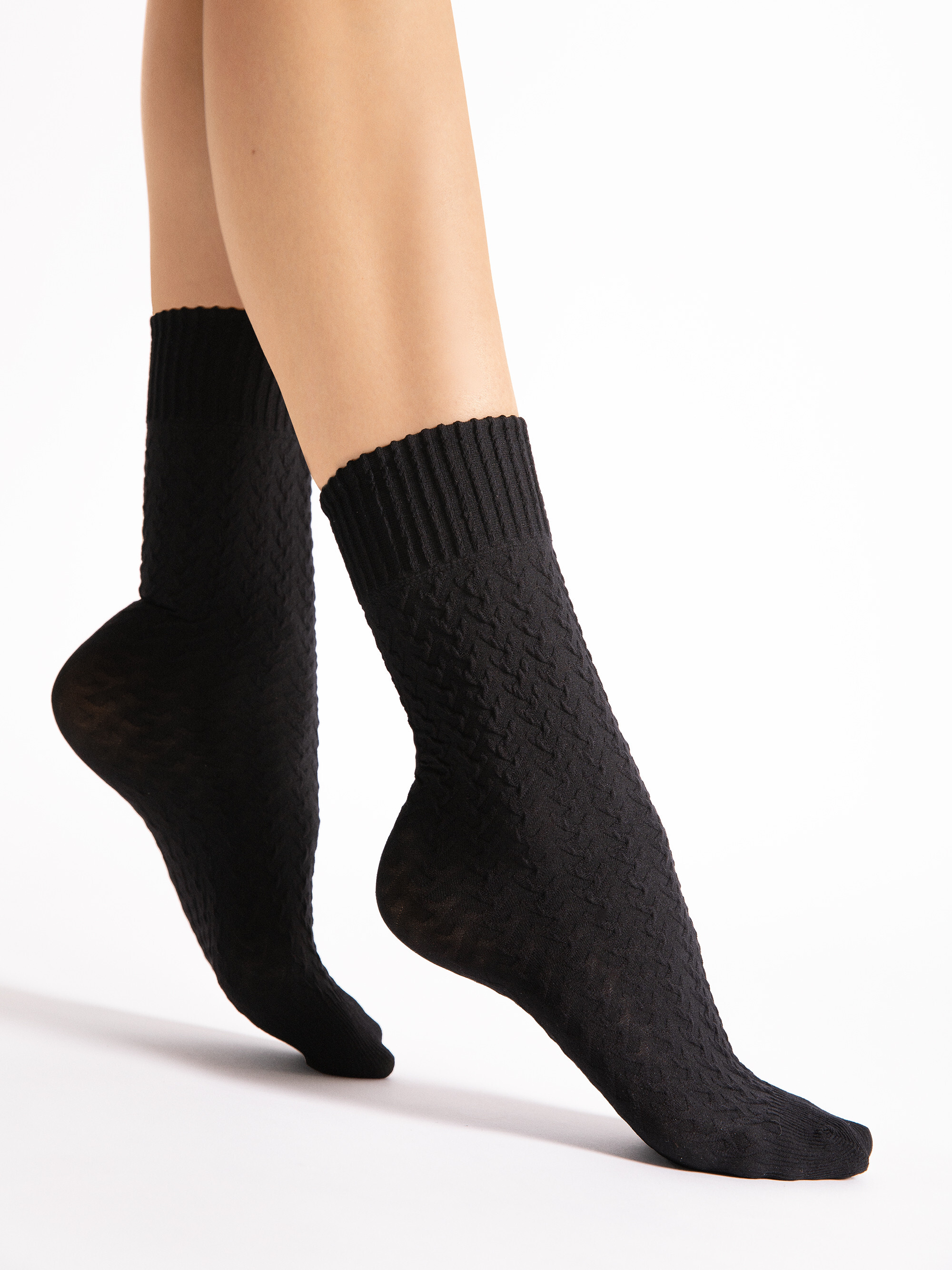 Blickdichte Söckchen mit Zopfmuster und einem bequemen, nicht einschneidenden Abschlussbund. Mit verstärkter Fußspitze. 60 denier