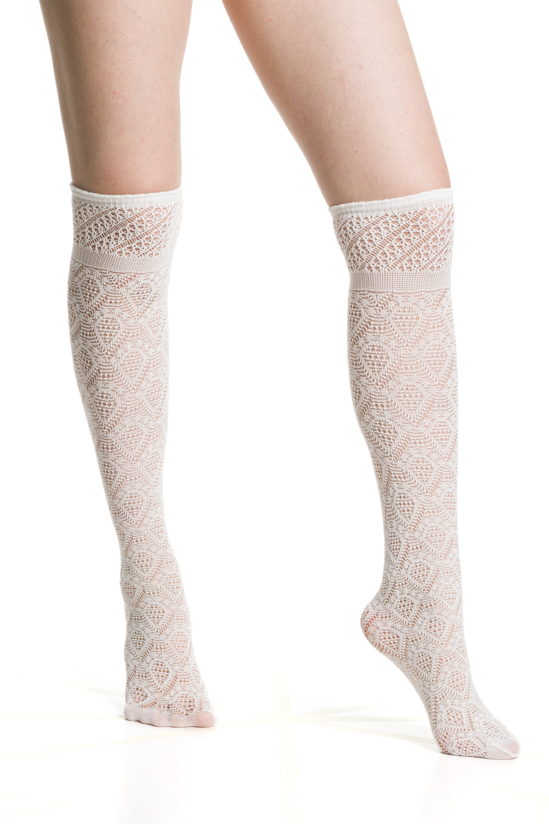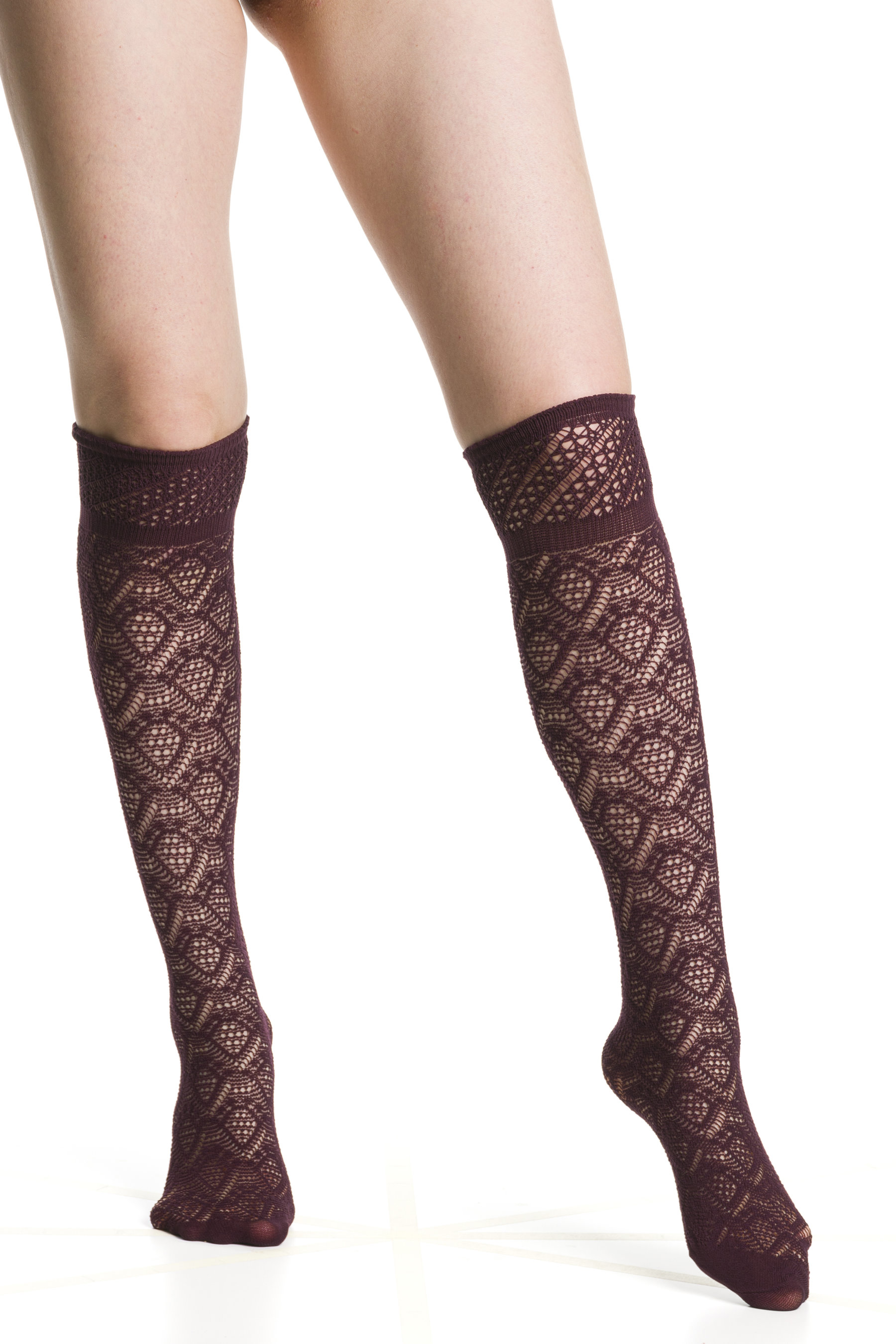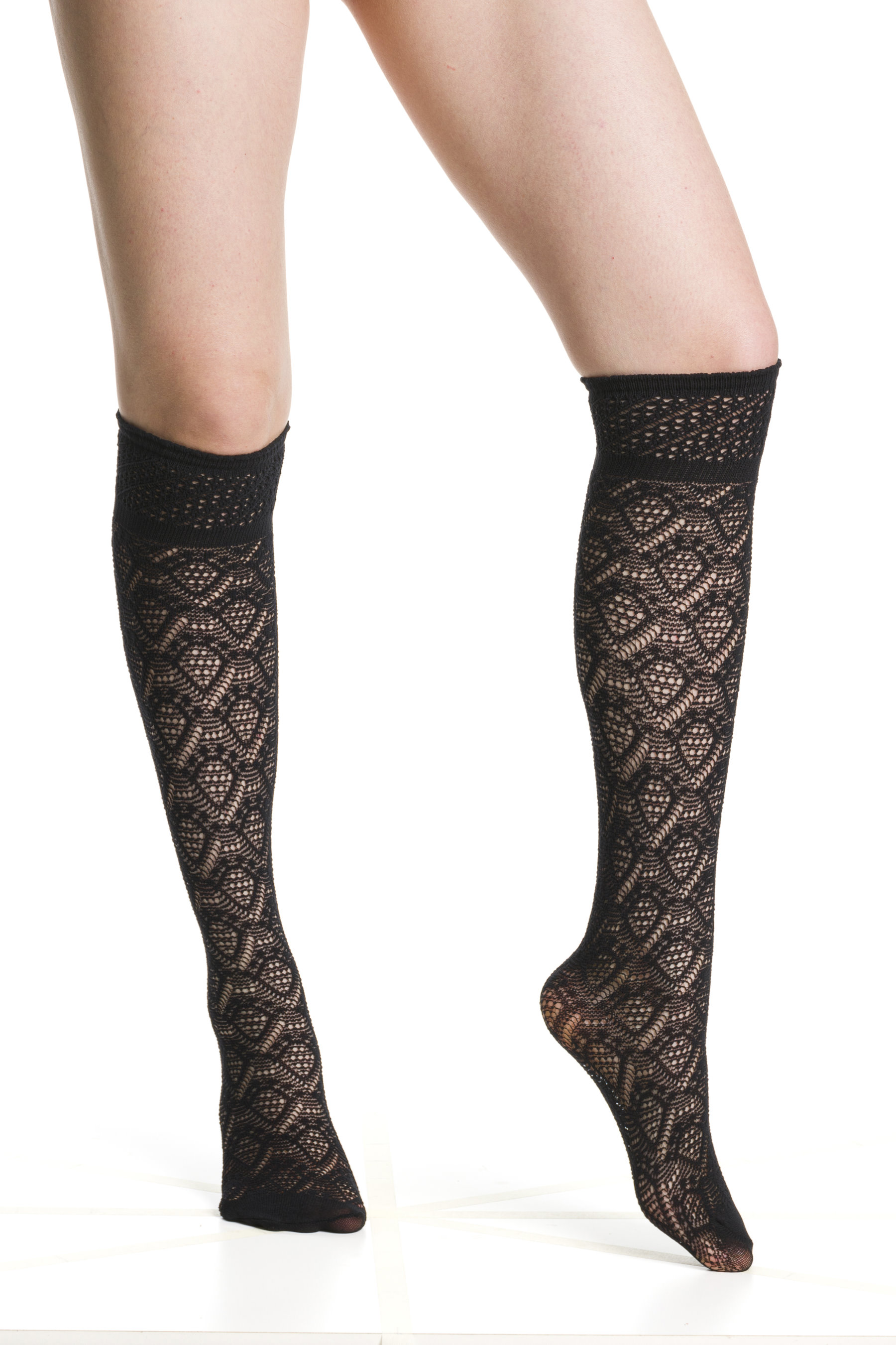 - Kniestrümpfe mit geometrischem Ajourmuster in Spitzenoptik, das aus vielen Basics ein modisches Outfit macht.
