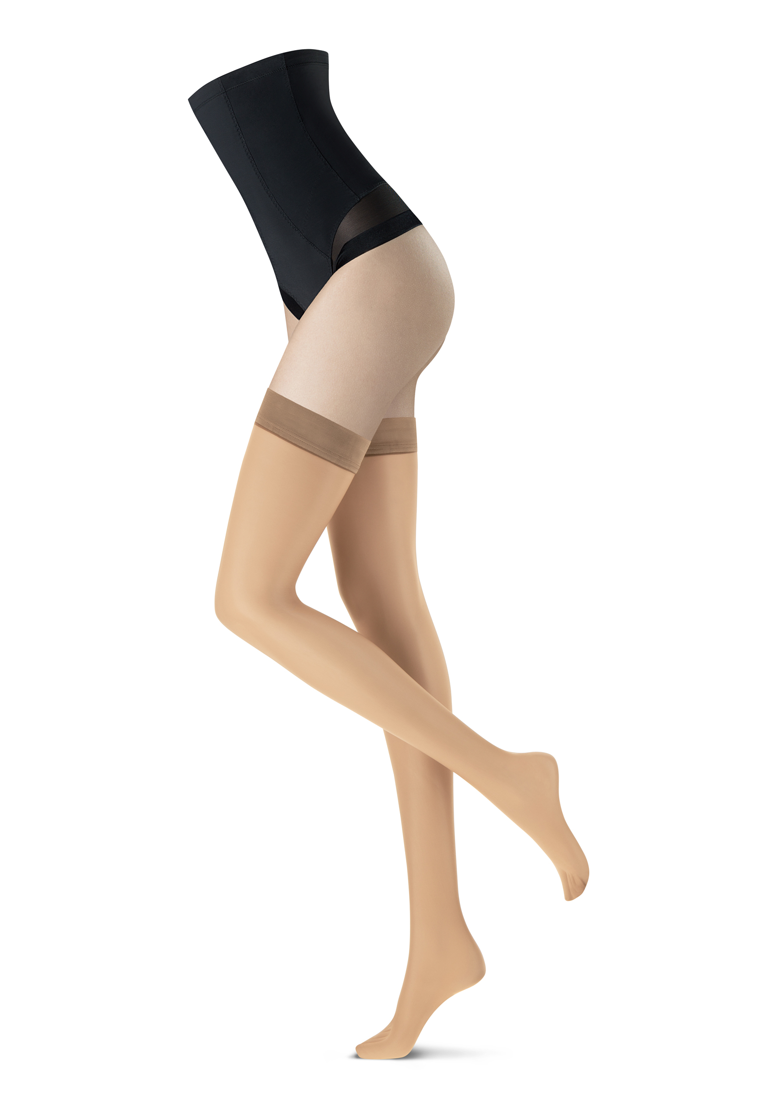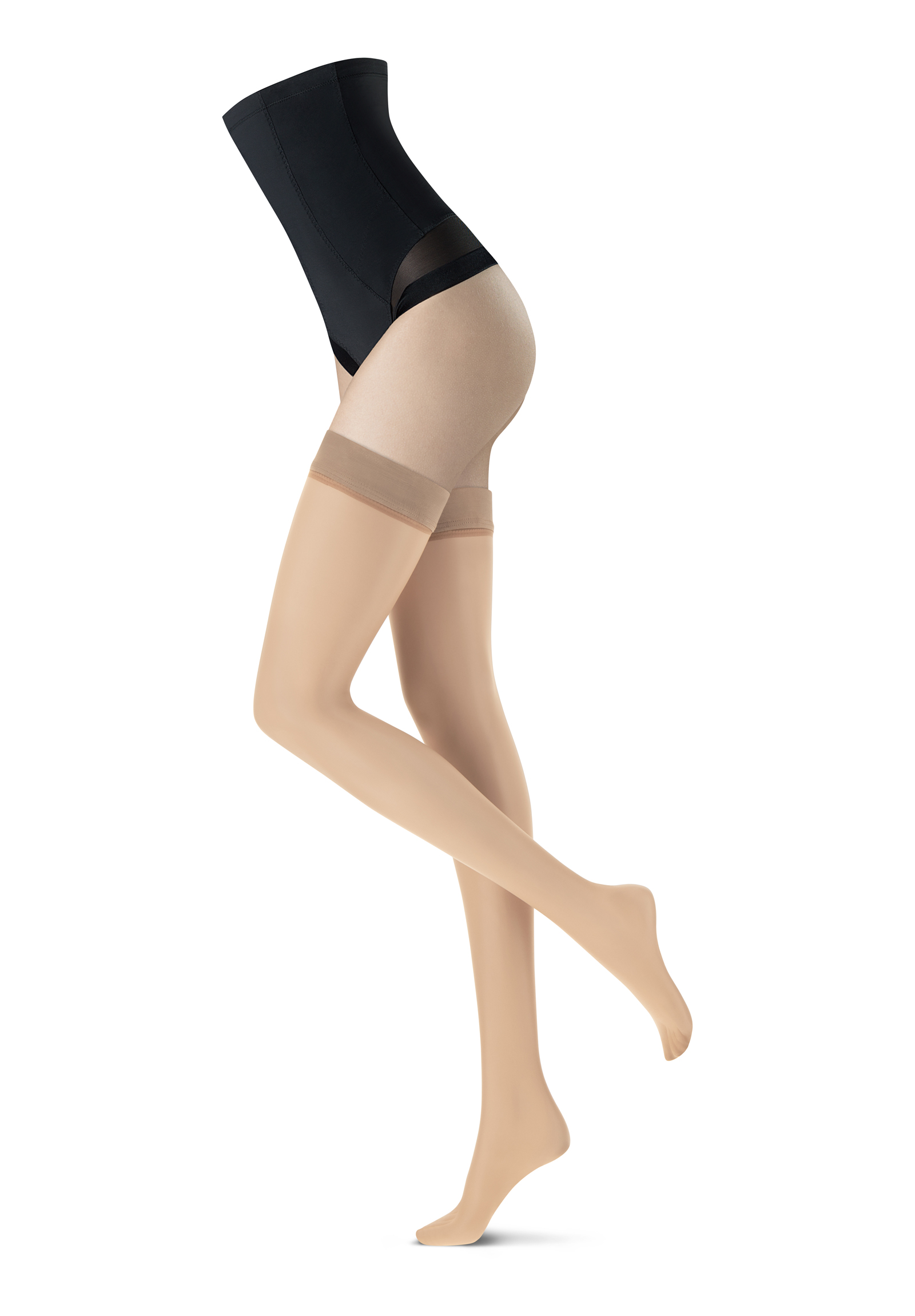- Frauen mit besonders schlanken Oberschenkeln müssen nicht unbedingt auf diese halterlosen Strümpfe verzichten, sondern können sie auch mit einem Strumpfhalter tragen.