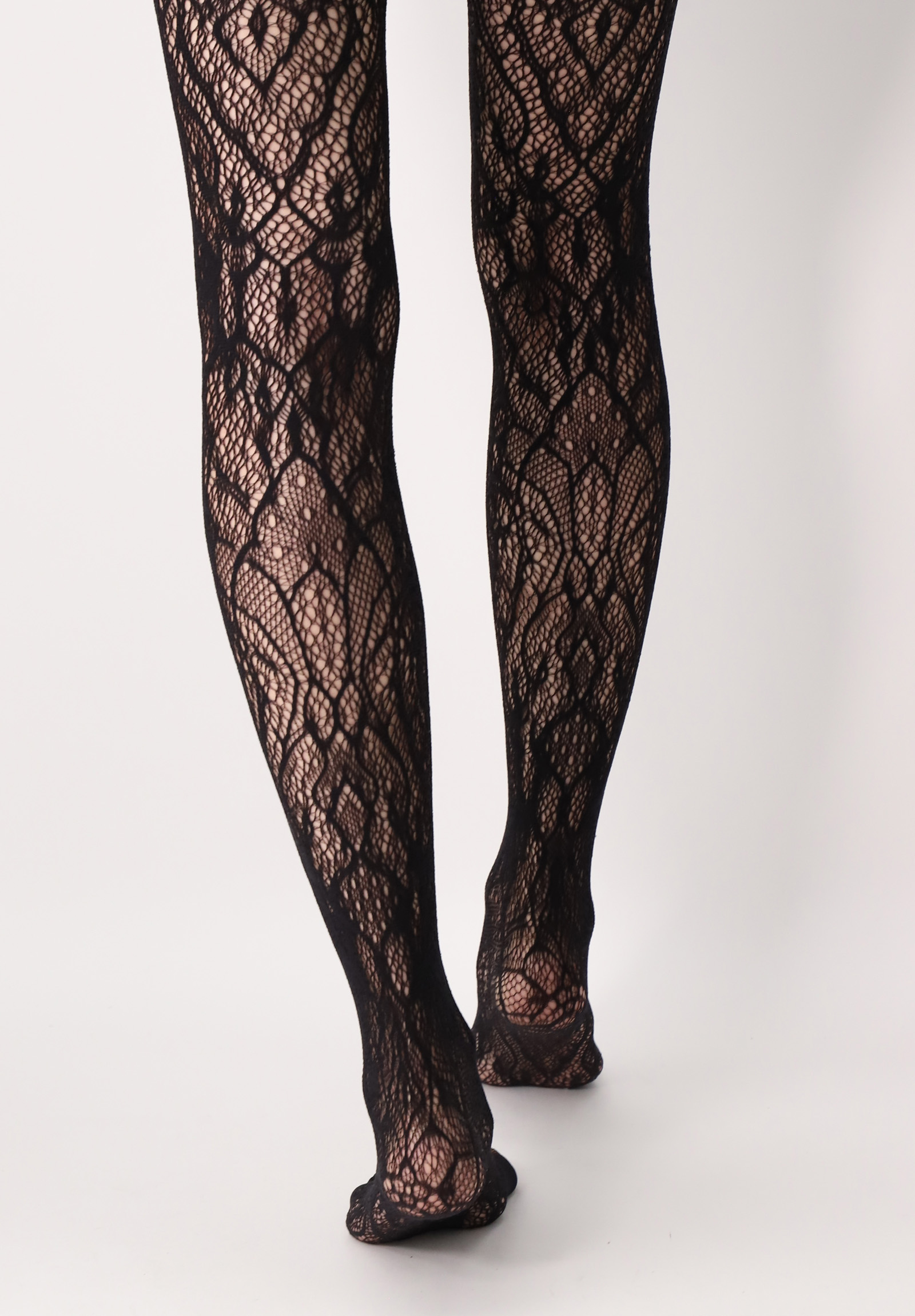 Gemusterte Strumpfhose aus weichem Netz. Der Spitzeneffekt verleiht einen zeitlosen Charme. Das nahtlose Höschenteil und verstärkte Fußspitzen sorgen für optimalen Tragekomfort.